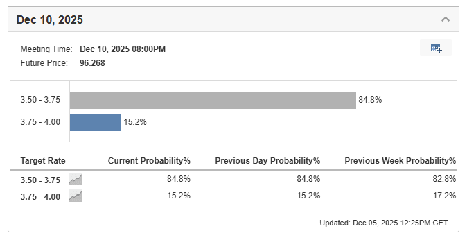 Il conto alla rovescia per il taglio dei tassi da parte della Federal Reserve è ormai al centro dell’attenzione dei mercati. Le probabilità implicite nei futures segnalano un’aspettativa intorno al 90% per una riduzione già nella riunione del 10 dicembre.