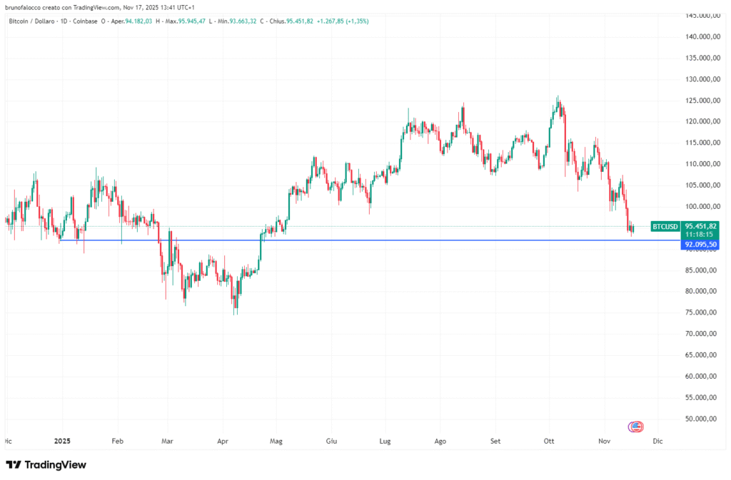 I mercati delle criptovalute stanno attraversando una fase apertamente ribassista. Bitcoin (BTC) è sceso a 95.000 dollari, cancellando completamente il guadagno di oltre il 30% accumulato da inizio anno. Il movimento arriva a poco più di un mese dai massimi storici e segue due fattori: l’indebolimento della narrativa pro-cripto legata all’amministrazione Trump e l’aumento dell’avversione al rischio nei mercati globali.
