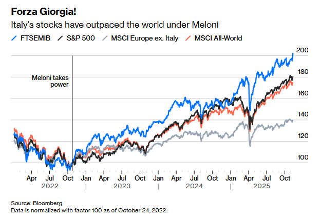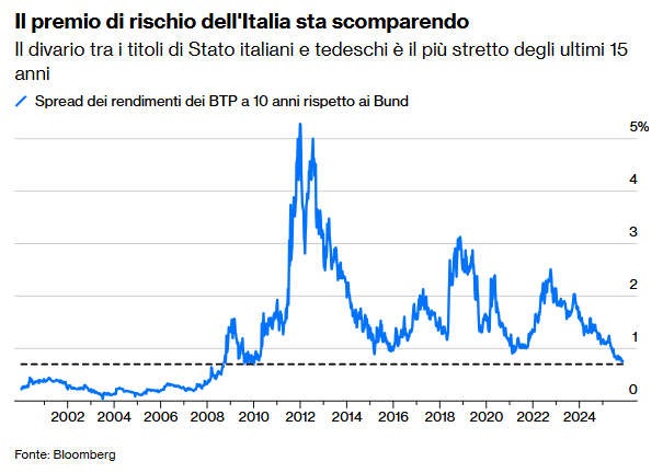 Dopo anni di sottovalutazione, il mercato italiano appare ancora a buon prezzo rispetto ai principali concorrenti europei. La combinazione di tassi in discesa e maggiore stabilità politica offre un terreno fertile per una rivalutazione strutturale, anche se la prudenza resta d’obbligo.
