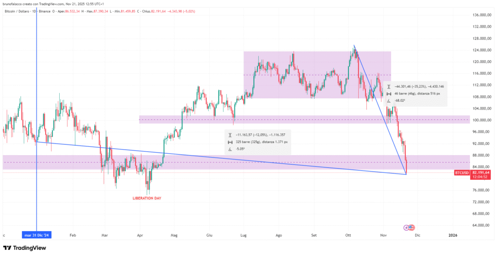 La speranza che la protagonista del trend del momento potesse da sola ridare entusiasmo all’intero mercato è venuta nei fatti meno. Il problema non sono i numeri (ottimi) di Nvidia, ma la redditività incerta del resto dell’ecosistema AI. A farne le spese maggiormente settori ciclici e asset rischiosi come Bitcoin, ora a -35% dai massimi e -12% YTD.