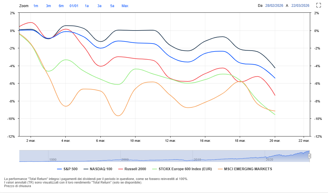 In aggiunta, le dichiarazioni delle ultime ore spesso contraddittorie del presidente degli Stati Uniti, Donald Trump, contribuiscono a mantenere alta la tensione. Tra segnali di possibile de-escalation e apertura prima (venerdì) e minacce alle infrastrutture energetiche in caso di mancata collaborazione delle autorità iraniane poi (nel week-end), gli investitori restano vigili e si riposizionano in attesa di sviluppi concreti.