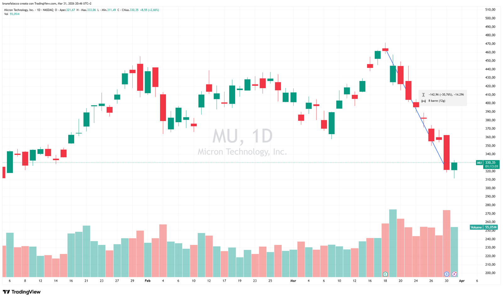 Il caso Micron (NASDAQ:MU)) è emblematico in tal senso: dopo aver più che triplicato i ricavi grazie alla forte domanda di memoria HBM per l’AI, il titolo ha perso circa il 30% dal giorno della trimestrale di metà marzo. A pesare ulteriormente sul titolo è stato l’annuncio di Google Research del 24 marzo del nuovo algoritmo TurboQuant, che permette di far girare modelli AI di grandi dimensioni consumando molta meno memoria.
