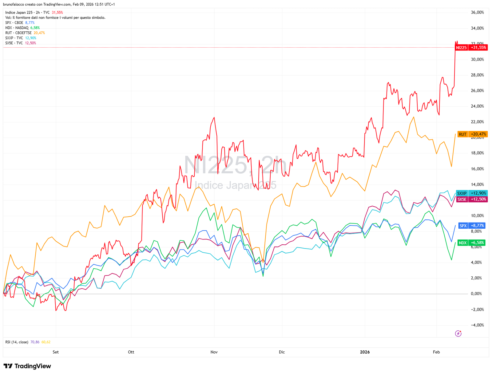 La netta vittoria elettorale della premier Takaichi nel week end ha dato una spinta immediata ai mercati azionari giapponesi, con l’indice Nikkei 225 (NI225) oggi in chiusura molto positiva al +3,90%.