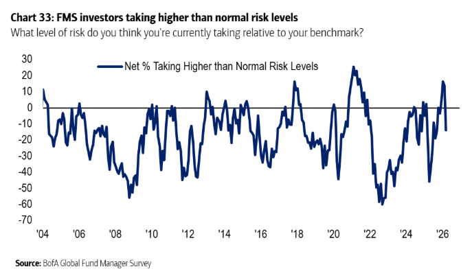Il sentiment resta cauto ma controllato: i sondaggi di Bank of America indicano una riduzione dell’esposizione al rischio da parte dei gestori di fondi globali, ma senza segnali di panico.
