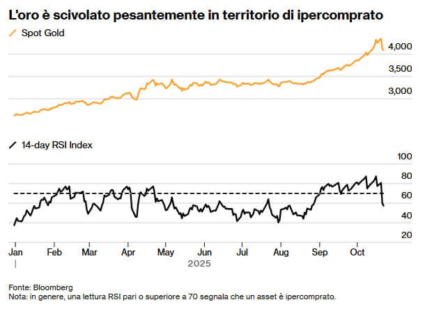 Intanto l’oro scivola sotto i 4.000 dollari l’oncia mentre il rame vola ai massimi storici, spinto dalla domanda legata all’AI. Sul fronte geopolitico, l’attesa è per l’incontro tra Donald Trump e Xi Jinping, mentre la decisione della Federal Reserve sui tassi di interesse attesa domani in serata potrebbe dettare il ritmo delle prossime settimane.